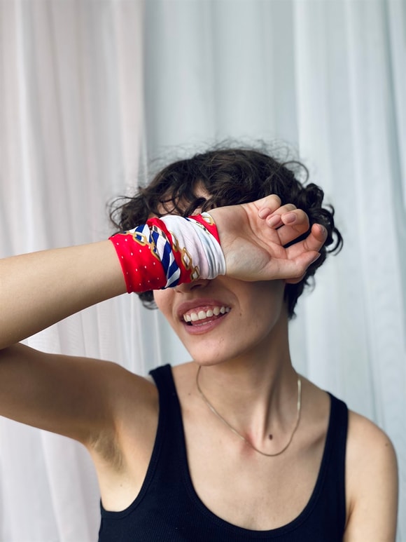 Satin-Chiffon blend fabric. Approximately 48.5x48.5 cm.