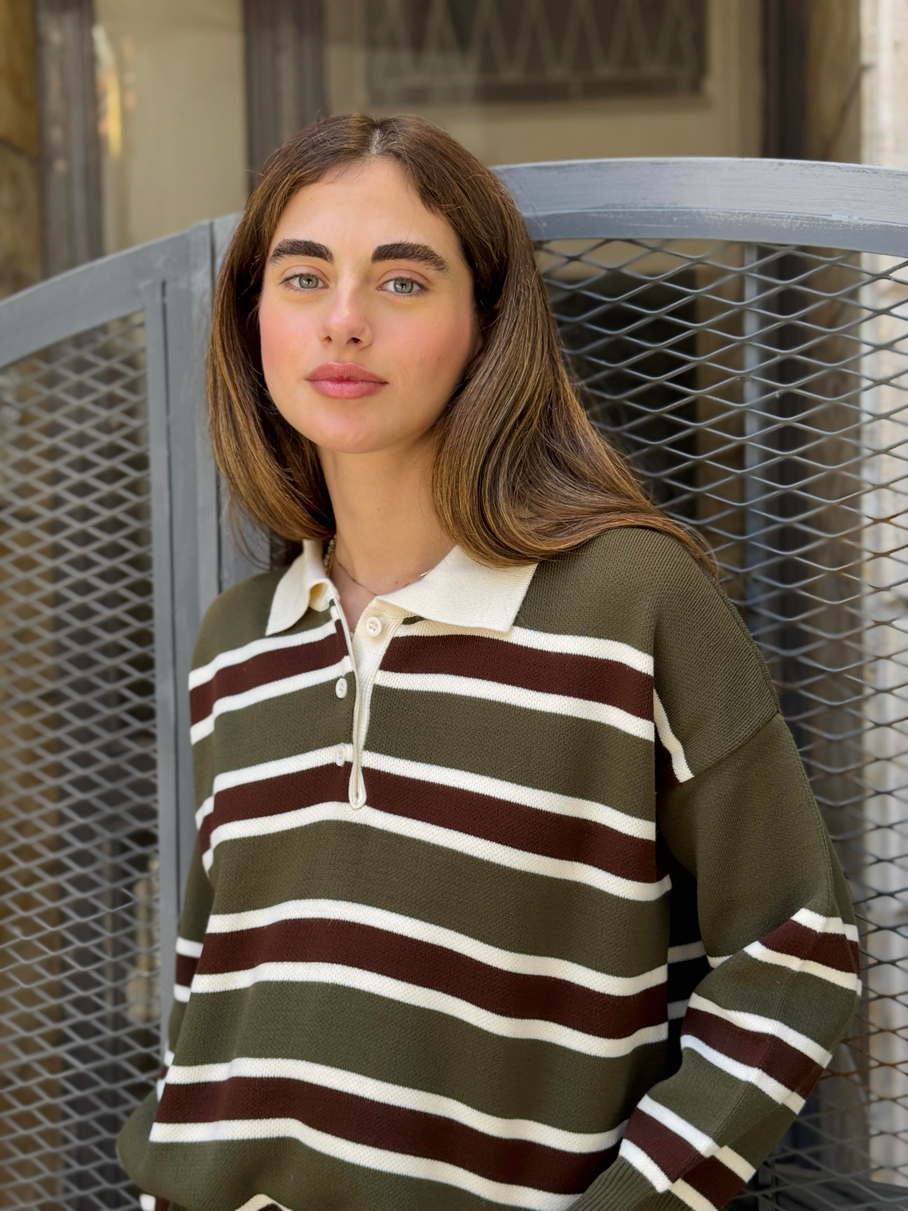 Retrobird Polo Yaka Çizgili Triko Kazak (ONL2013037)
