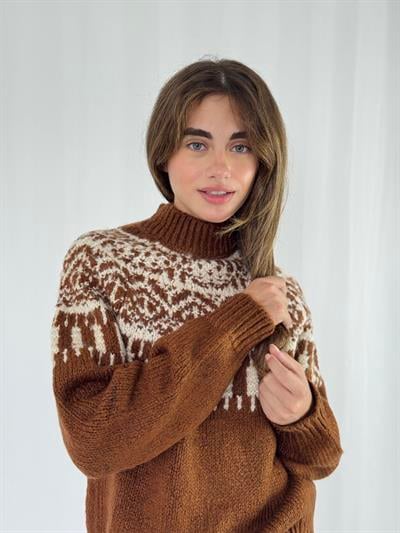 Retrobird Kahverengi Yarım Dik Boğazlı Triko Kazak (ONL2012980)