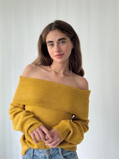 Retrobird Omuz Dekolteli Hardal Straplez Katlamalı Triko Kazak (ONL2012995)