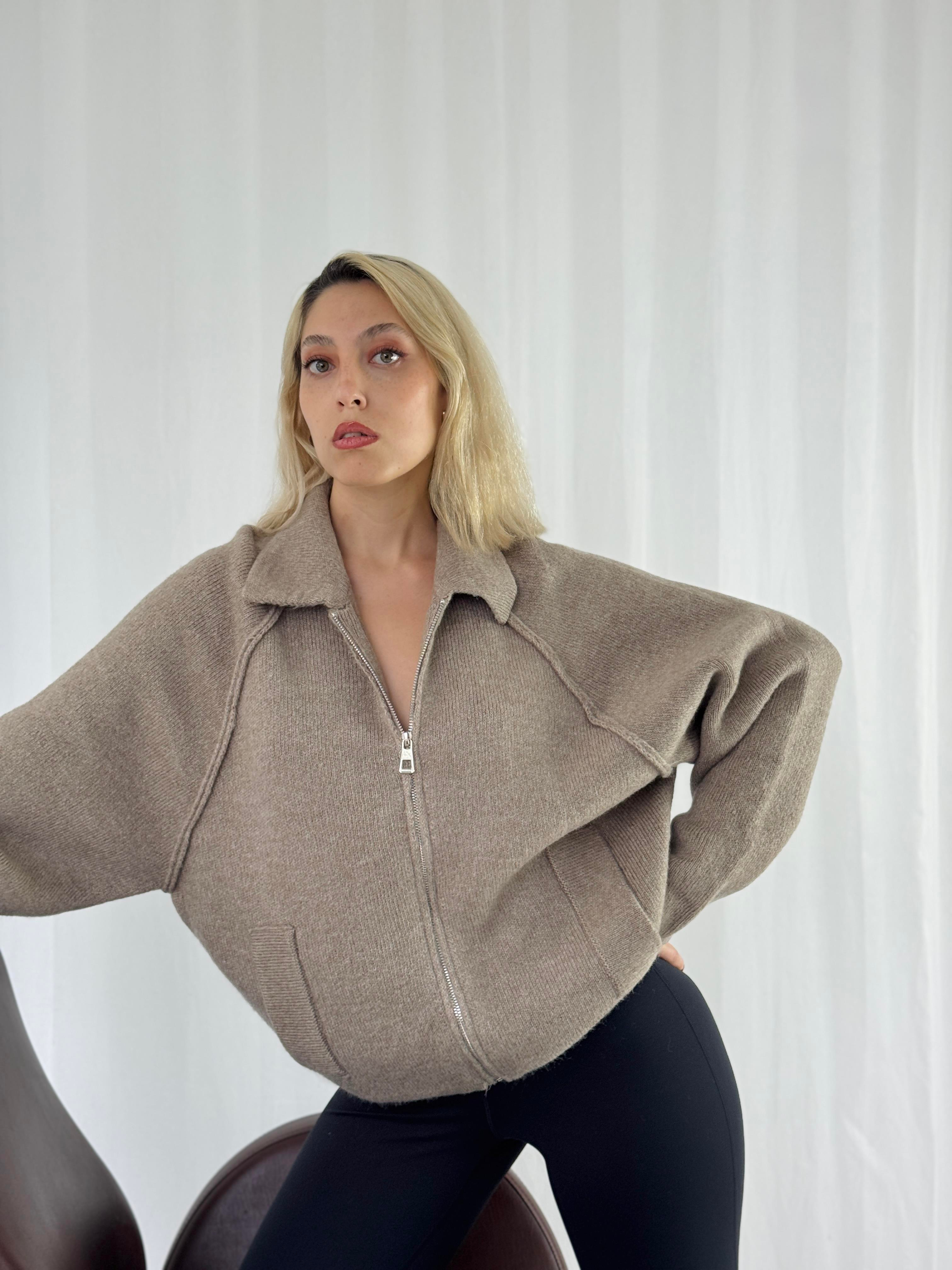 Retrobird Önden Fermuarlı Polo Yaka Vizon Ceket Hırka