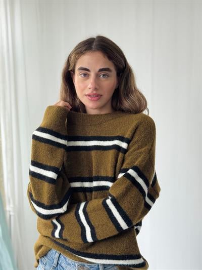 Retrobird Tütün Rengi Şardonlu Çizgili Triko Kazak (ONL2012993)